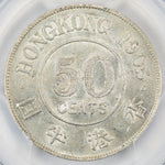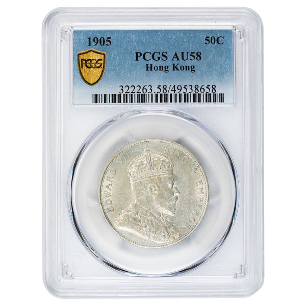 Available for sale is a Hong Kong 1905 50 Cents Silver Coin KM #15 - PCGS AU-58