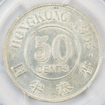 Available for sale is a Hong Kong 1905 50 Cents Silver Coin KM #15 - PCGS UNC Detail Cleaned