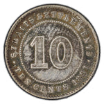 Available for sale is a Straits Settlements 1891 10 Cents Silver Coin KM #11 - EF-40