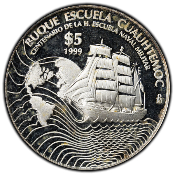 Available for sale is a Mexico 1999 5 Pesos Silver Coin Buque Escuela Cuauhtemoc - Proof
