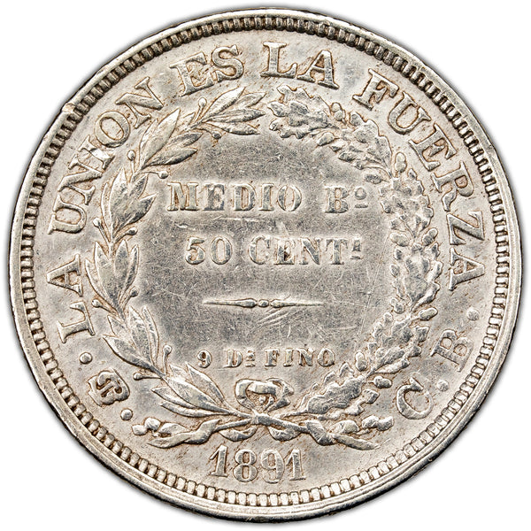 Available for sale is a Bolivia 1891 50 Cents Silver Coin KM #161