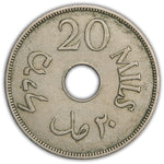Available for sale is a Israel Palestine British Mandate 1940 20 Mils Coin