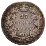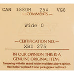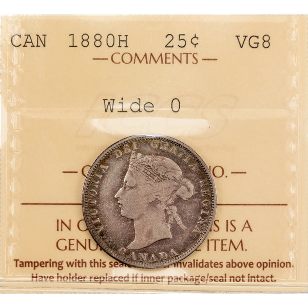 Available for sale is a Canada 1880-H Wide 0 25 Cents Quarter Silver Coin - ICCS VG-8