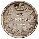 Available for sale is a Canada 1886 Small 6 Obverse #5 10 Cents Dime Silver Coin - Fine + SKU: SP1779