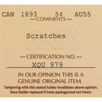 Available for sale is a Canada 1893 5 Cents Silver Coin - ICCS AU-55 (scratches)