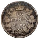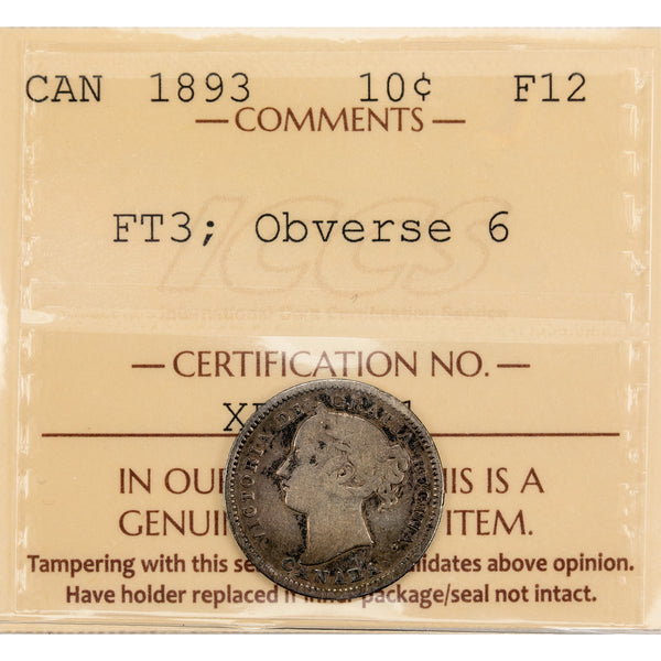Available for sale is a Canada 1893 FT3 Obverse 6 10 Cents Dime Silver Coin - ICCS F-12