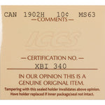 Canada 1902-H 10 Cents Dime Silver Coin - ICCS MS-63