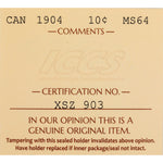 Available for sale is a Canada 1904 10 Cents Dime Silver Coin - ICCS MS-64
