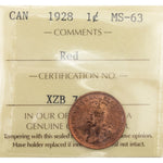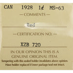 Available for sale is a Canada 1928 One Small Cent Coin - ICCS MS-63 Red