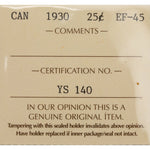 Available for sale is a Canada 1930 25 Cents Quarter Silver Coin - ICCS EF-45