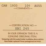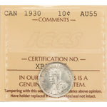 Available for sale is a Canada 1930 Cents Dime Silver Coin - ICCS AU-55