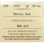 Available for sale is a Canada 1937 1 Small Cent Matte Specimen Coin - ICCS SP-66 Red