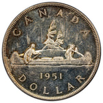 Country: Canada Year: 1951 Denomination: $1 One Dollar  Catalogue: KM #46 Comments: Waterlines Variety Quantity Minted: 416,395 Composition: Silver (.800) Weight: 23.33 Diameter: 36mm SKU: SP1859