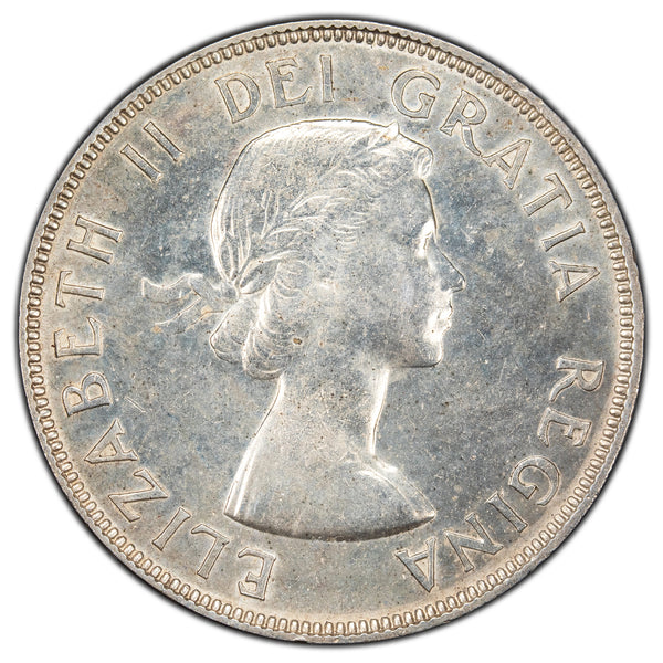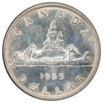 Available for sale is a Canada 1955 Fu Manchu $1 Silver Dollar Coin - Almost Uncirculated (lt. cleaned)