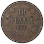 Available for sale is a Finland 1866 10 Pennia Coin KM #5.1