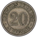Available for sale is a Germany 1887E 20 Pfennig Coin KM #9.1