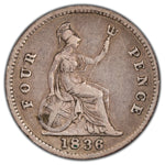 Available for sale is a Great Britain 1836 4d Four Pence Silver Coin KM #723