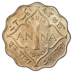 Available for sale is a India 1940 Short Trefoils Bombay One Anna Coin KM #537