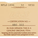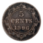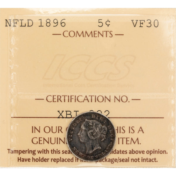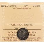 Available for sale is a Newfoundland 1896 5 Cents Silver Coin - ICCS VF-30