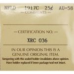 Available for sale is a Newfoundland 1917-C 25 Cents Quarter Silver Coin - ICCS AU-58