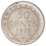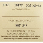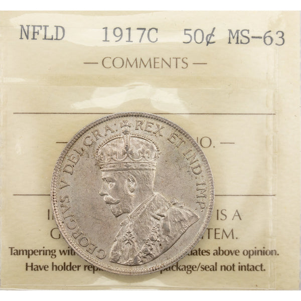 Available for sale is a Newfoundland 1917-C 50 Cents Silver Coin - ICCS MS-63