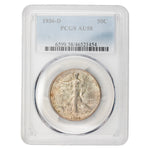 Available for sale is a United States 1936-D 50 Cents Walking Liberty Half Dollar Silver Coin - PCGS AU-58