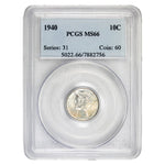 Available for sale is a United States 1940 10 Cents Mercury Dime Silver Coin - PCGS MS-66