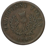 Available for sale is a Canada Nova Scotia 1840 Large '0' 1/2 Half Penny Token NS-1E1
