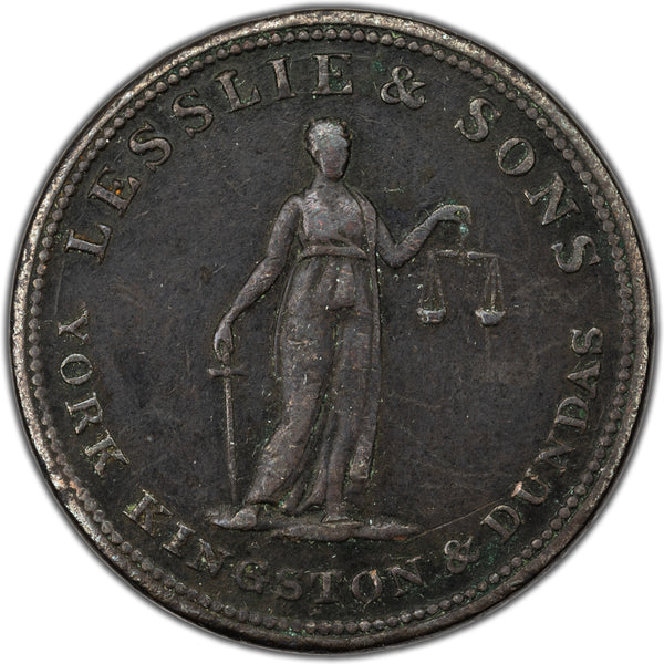 Available for sale is a Upper Canada (1824) Leslie & Son 1/2d Half Penny Token UC-2A2 - Fine +