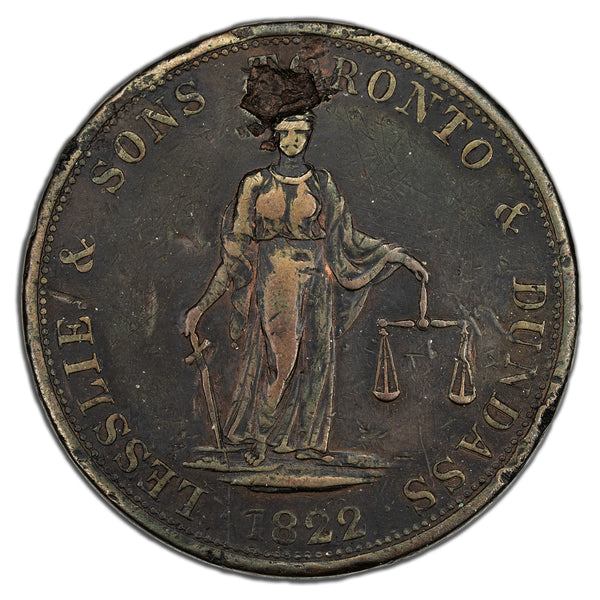 Available for sale is a Upper Canada Leslie & Sons 1822 2d Two Pence Token UC-3 - Damaged