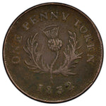 Nova Scotia 1832 Flat Top 1 / Engrailed Edge One Penny Token NS-4A1