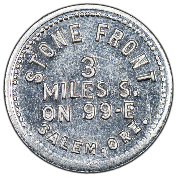 Available for sale is a United States Salem, OR Stone Front G/F 10 Cents Token TC-4343