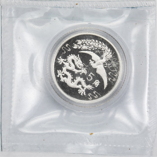 Available for sale is a China 1990 5 Jiao .999 Silver Coin - Dragon and Phoenix Sealed