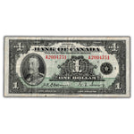 Available for sale is a $1 1935 Bank of Canada Note English Text Series A BC-1 - F/VF (tear)