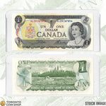 The 1973 $1 banknotes are one of the most iconic Canadian banknote issues. The 1973 series is the last time the Bank of Canada produced the $1 denomination for banknotes. Featuring Queen Elizabeth II and the Coat of Arms of Canada on the face design with a green multicoloured tint. Parliament Hill is displayed on the back design with a lovely vignette from across the Ottawa river.