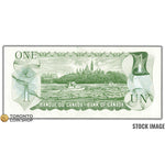 Available for sale is a $1 1973 Bank of Canada Note Crow-Bouey Signatures 3 Letter Prefix - Uncirculated