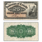 Available for sale is a 25 Cents 1900 Dominion of Canada Note Shinplaster Boville DC-15b - VF