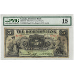 Available for sale is a $5 1925 The Dominion Bank Canada Chartered Note #220-16-14 - PMG F-15