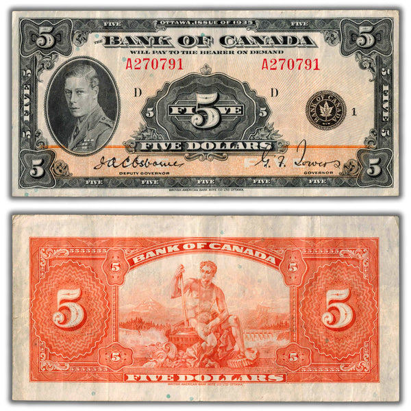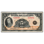 Available for sale is a $5 1935 Bank of Canada Note English Text BC-5 - VF