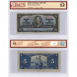 Available for sale is a $5 1937 Bank of Canada Note Osborne Signature BC-23a - BCS F-12