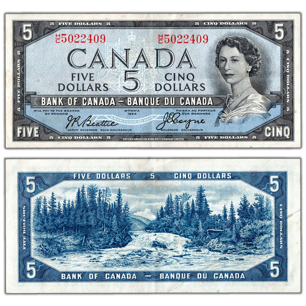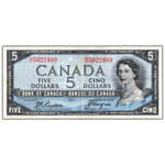 Available for sale is a $5 1954 Bank of Canada Note Devil Face H/C Prefix BC-31b - VF/EF