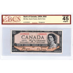 Available for sale is a $50 1954 Bank of Canada Note Devil Face BC-34a - BCS EF-45