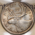 Available for sale is a Canada 1938 25 Cents Quarter Silver Coin - ICCS MS-64