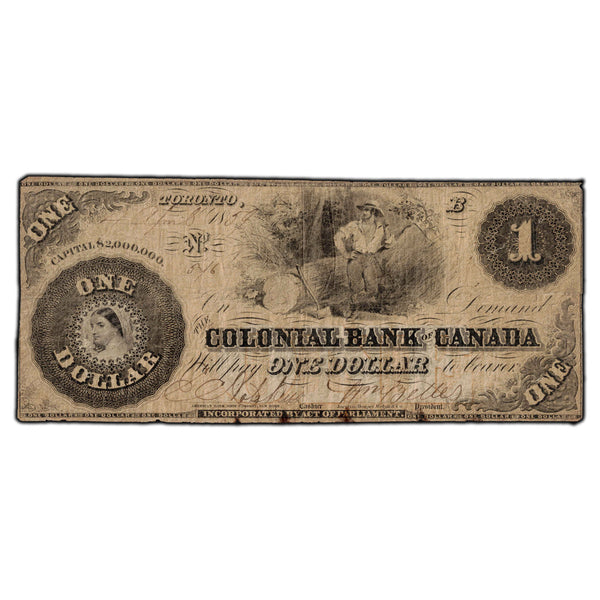 SOLD $1 1859 Colonial Bank of Canada Note - Circulated