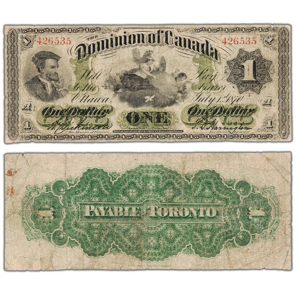 SOLD $1 1870 Dominion of Canada Note Payable at Toronto DC-2b-i - Fine