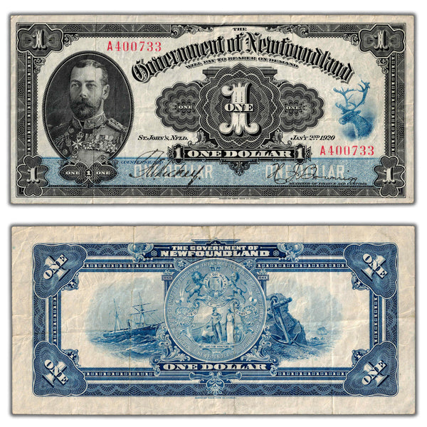 SOLD $1 1920 Government of Newfoundland Note Hickey-Brownrigg NF-12b - Nice VF