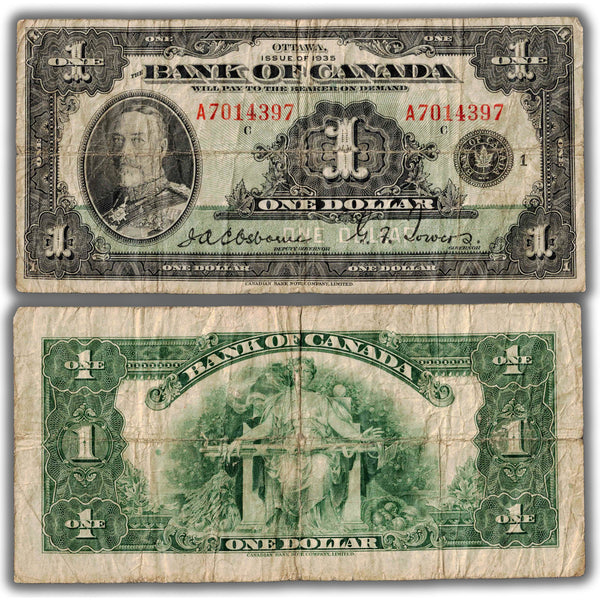 SOLD $1 1935 Bank of Canada Note English Text BC-1 - VG/F