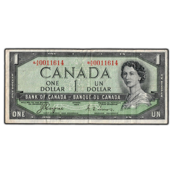 SOLD $1 1954 Bank Of Canada Note Devil Face *A/A Replacement BC-29aA (staple hole)