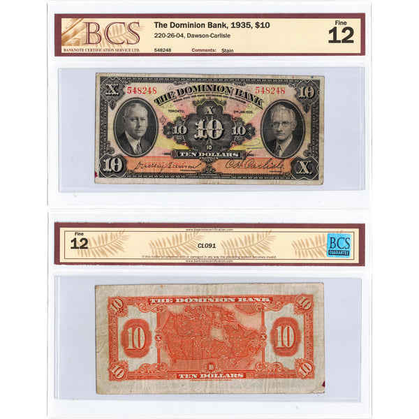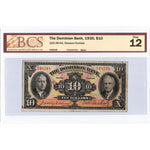 SOLD $10 1935 The Dominion Bank Canada Chartered Note #220-26-04 - BCS F-12