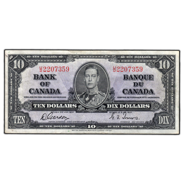 SOLD $10 1937 Bank of Canada Note Gordon-Towers U/D Prefix BC-24b